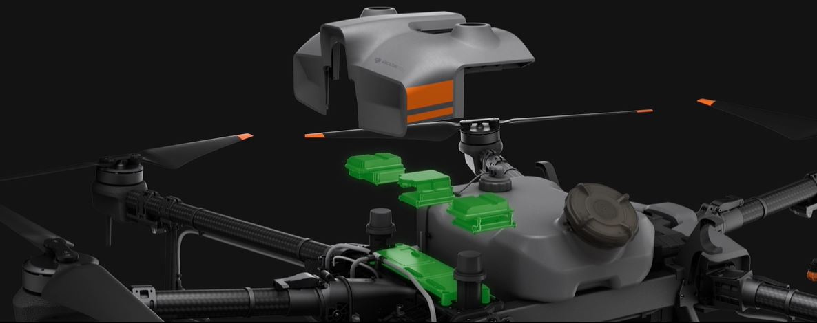 El módulo de control Agras T30 tiene una estructura completamente cerrada para mayor durabilidad. Todos los componentes críticos tienen tres capas de protección y tienen clasificación IP67. Ideal para el uso prolongado de pesticidas y fertilizantes, y para resistir el polvo y la corrosión.