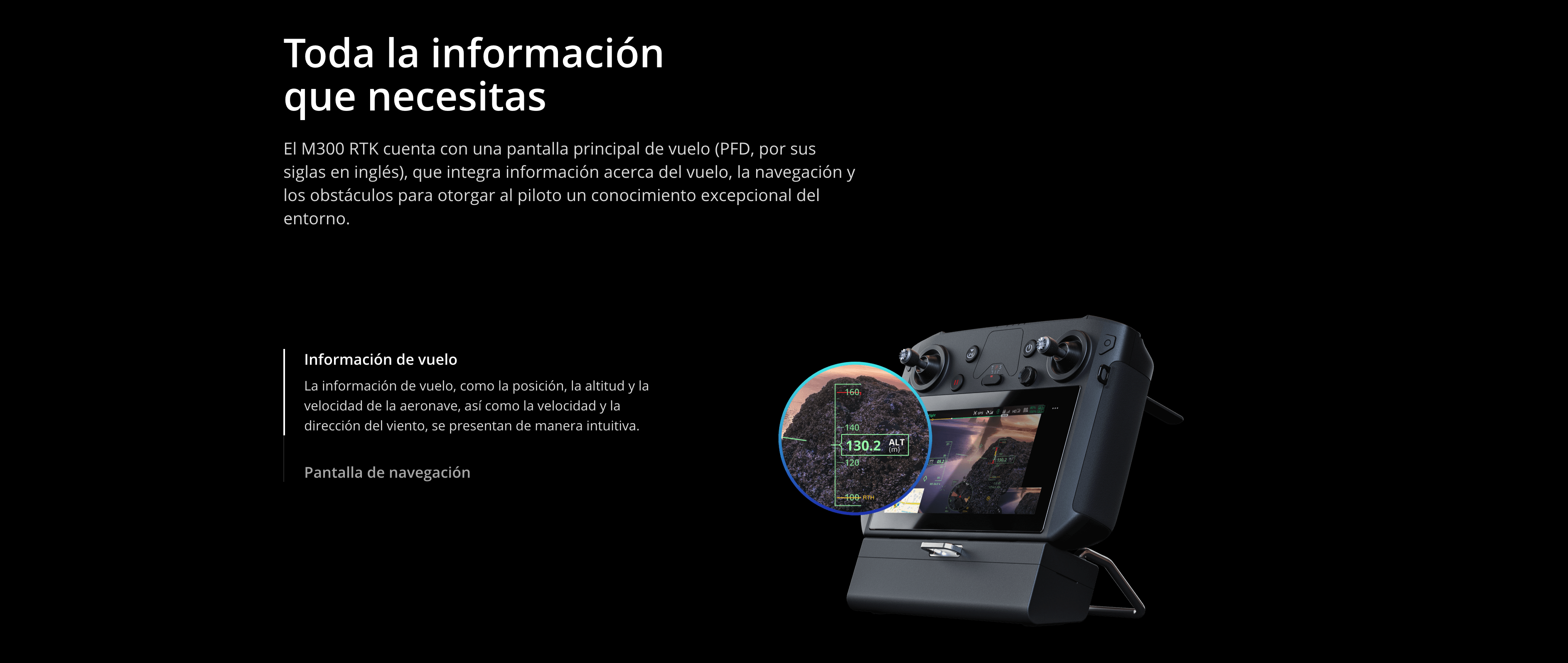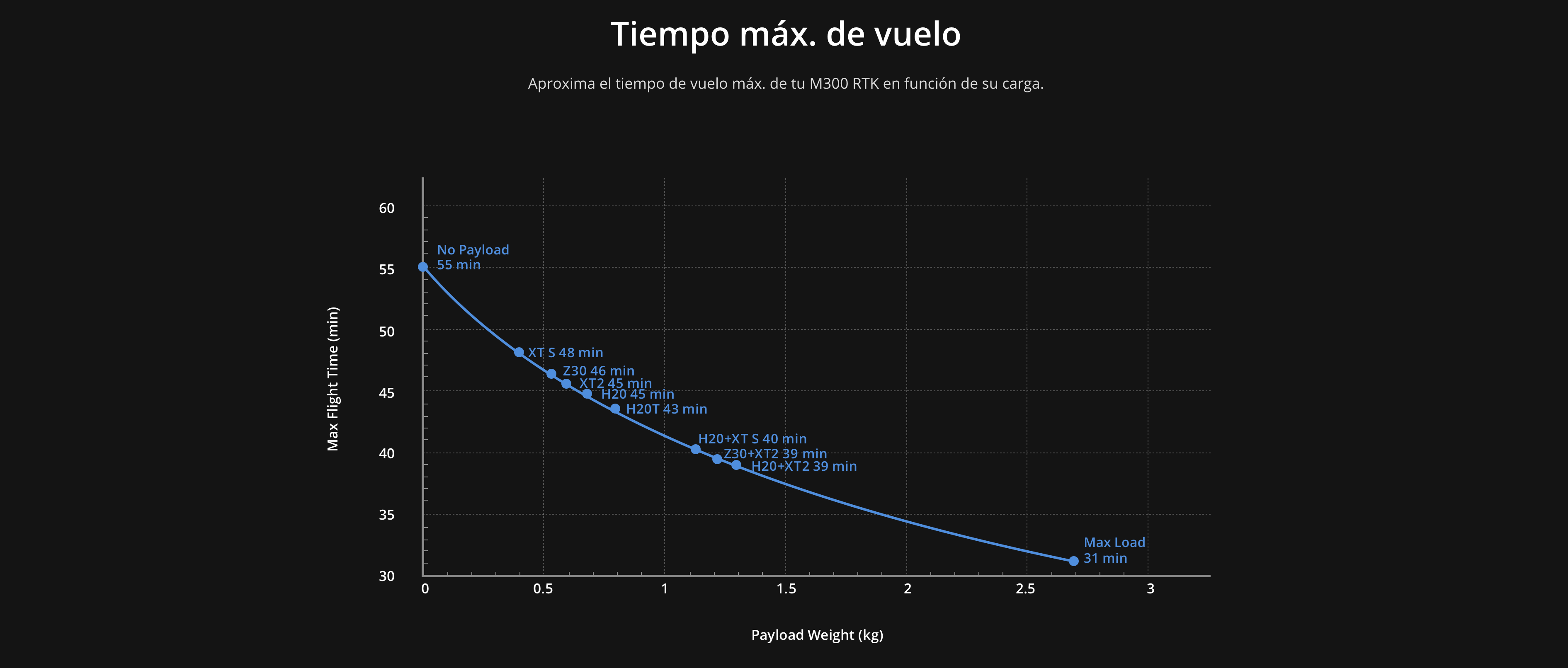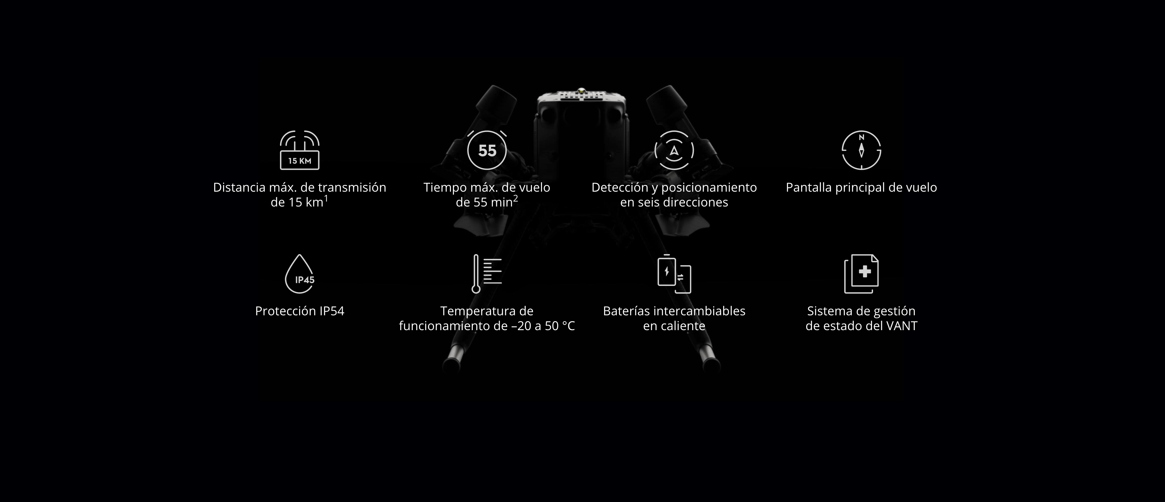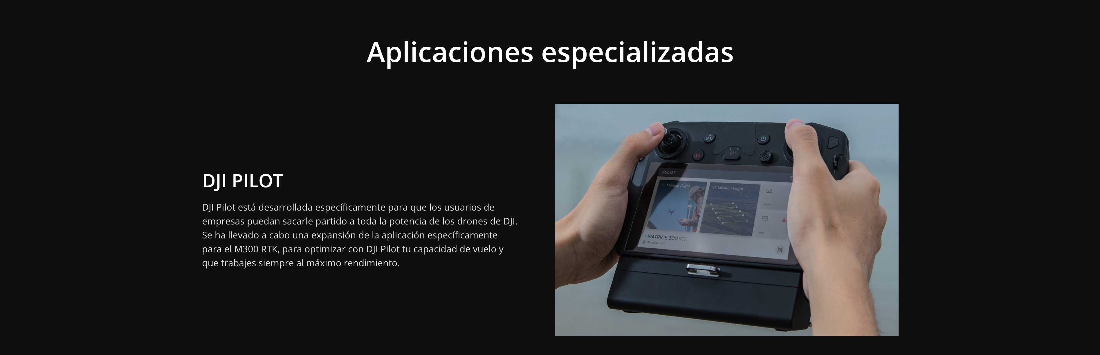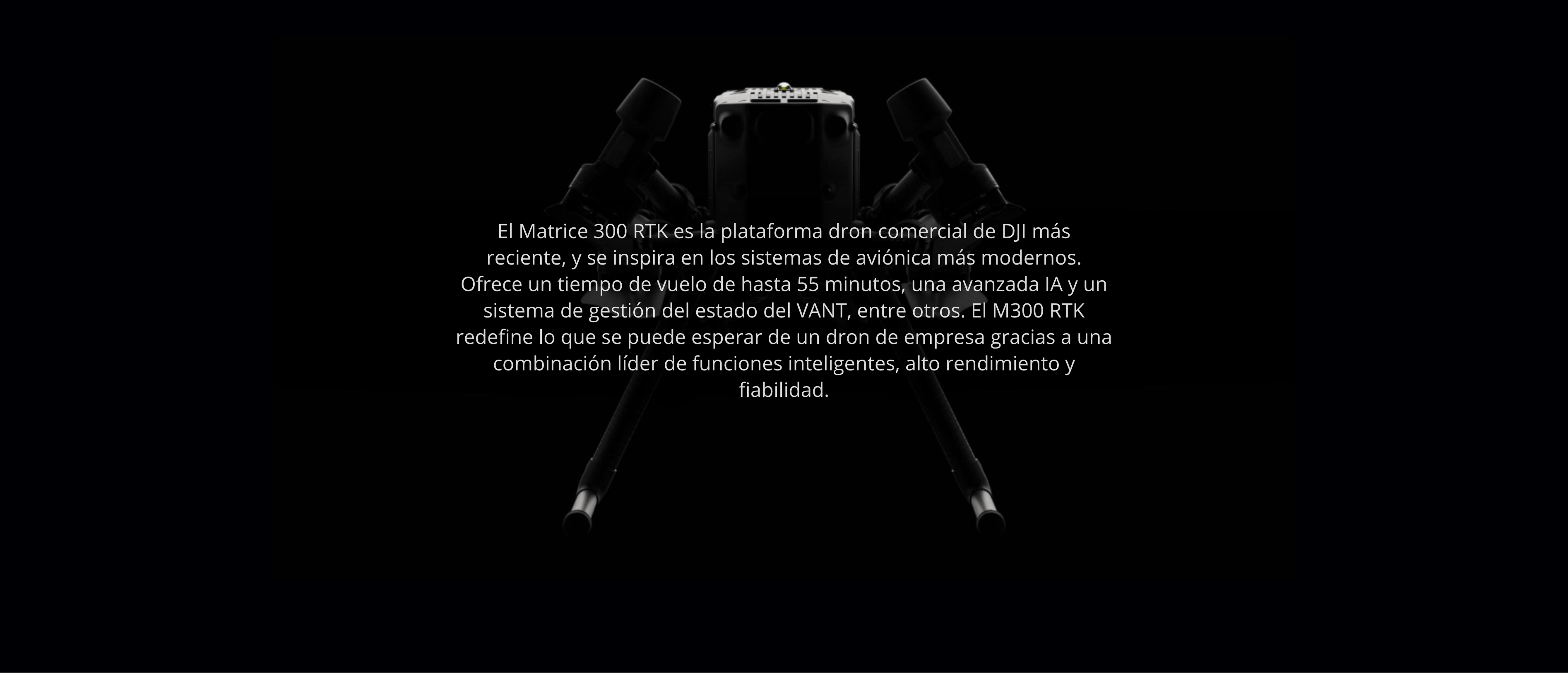 Matrice 300 RTK aumenta su autonomía de vuelo en hasta 55 minutos con una rango de transmisión de vídeo de 15 kilómetros incorporando varios sensores como el térmico. Está diseñado para aplicaciones profesionales, como la seguridad y salvamento, construcción, inspección industrial y eficiencia energética.