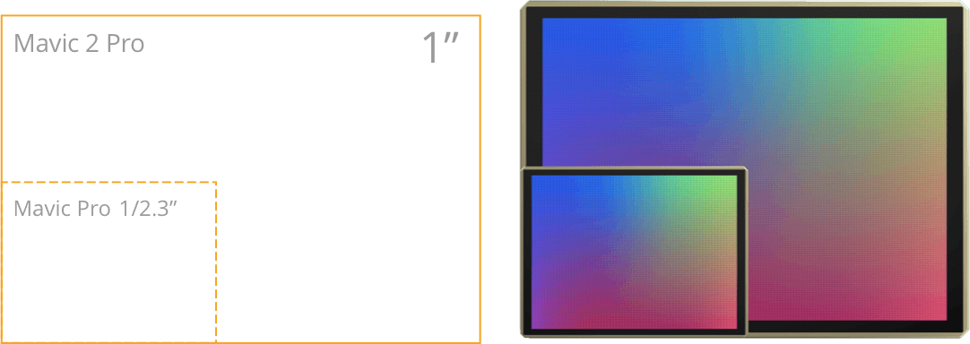 El nuevo sensor CMOS de 1 pulgada tiene un área de detección activa cuatro veces más efectiva que el Mavic Pro original. El sensor grande también significa un mejor rendimiento en entornos con poca luz con un rango ISO más extenso, ISO máximo elevado de 3200 a 12800.